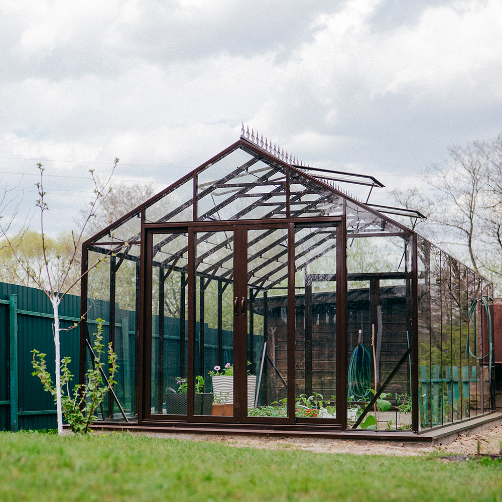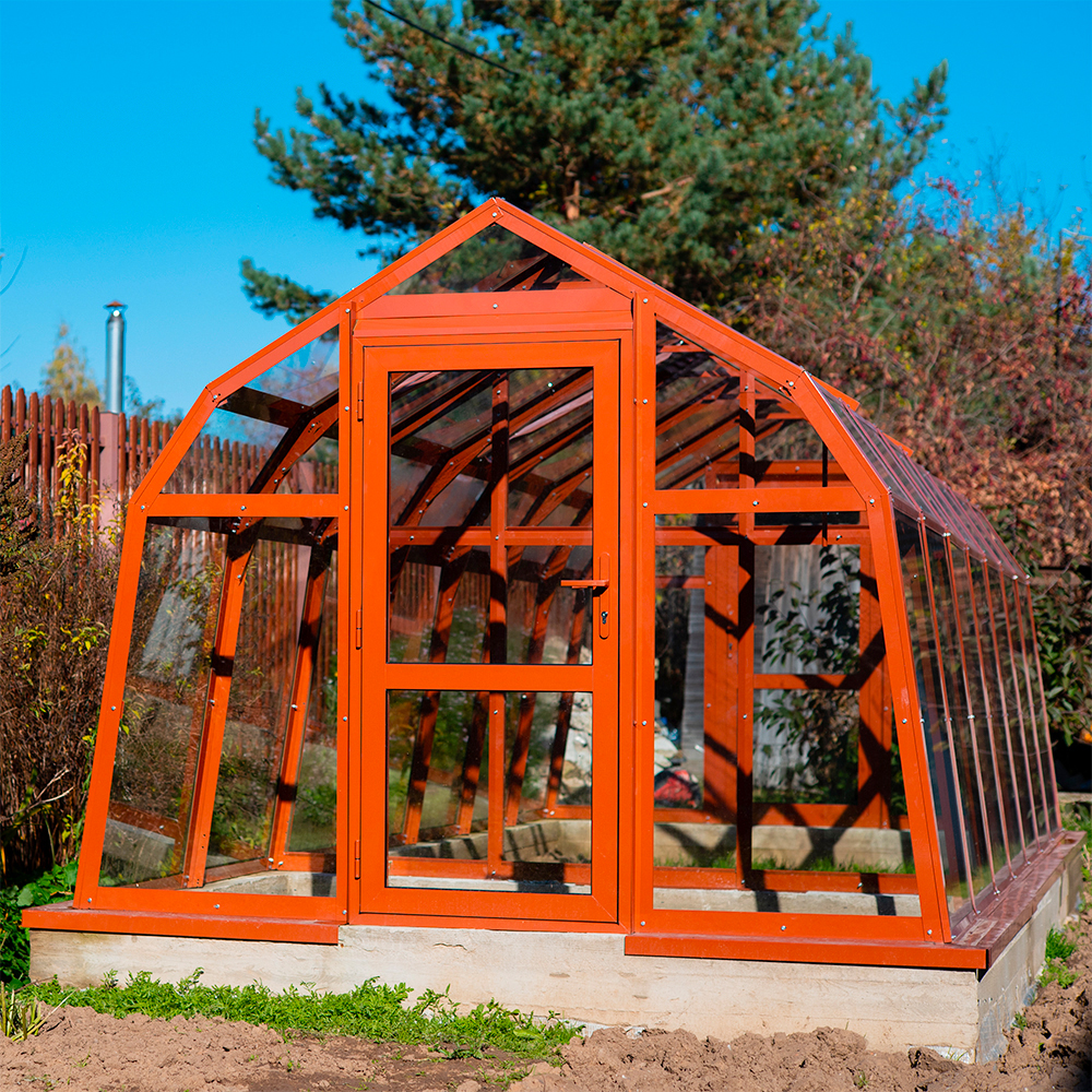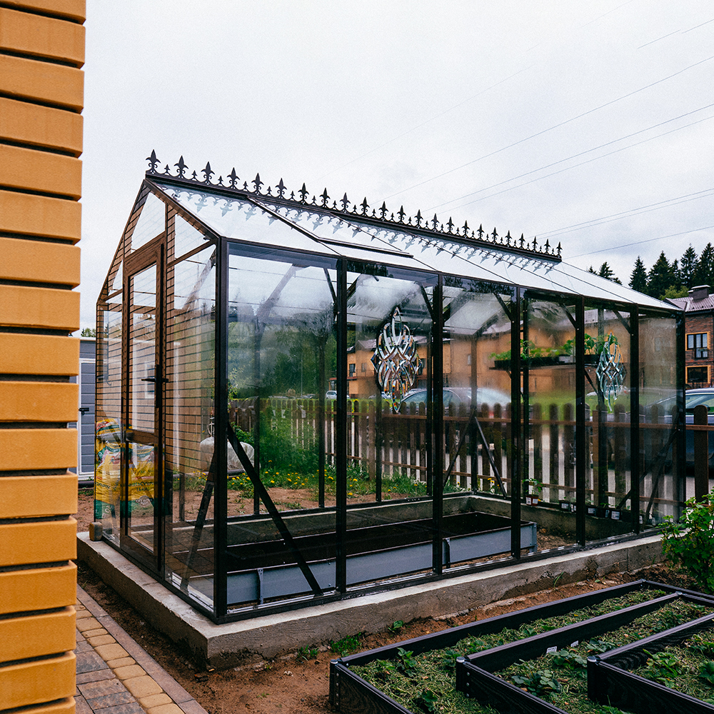 Изначально теплицы GLASS HOUSE разрабатывались под покрытие стеклом, поэтому запас прочности конструкции позволяет с легкостью выдерживать повышенные ветровые и снеговые нагрузки!